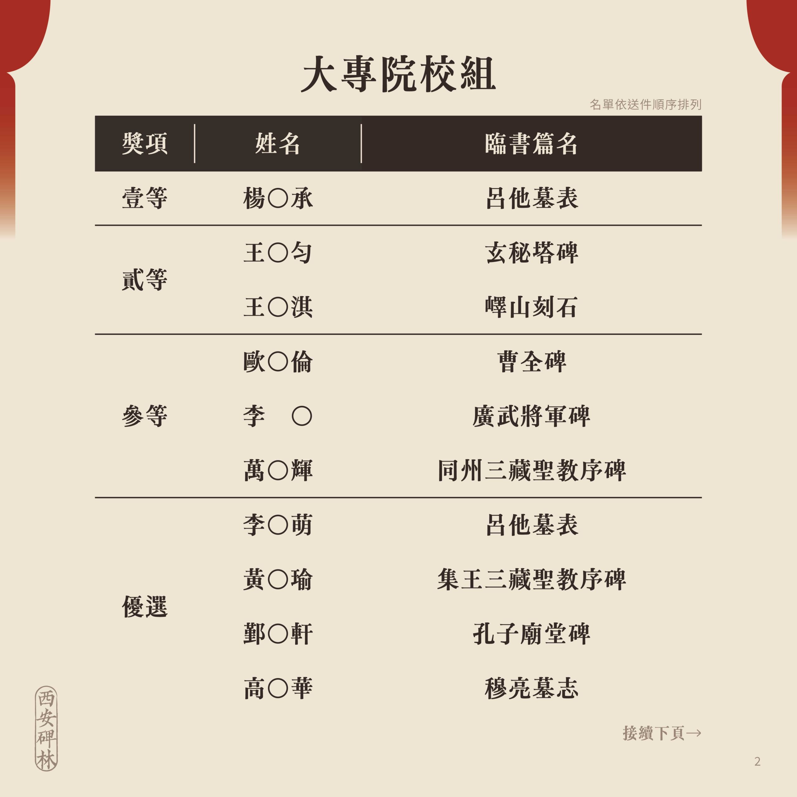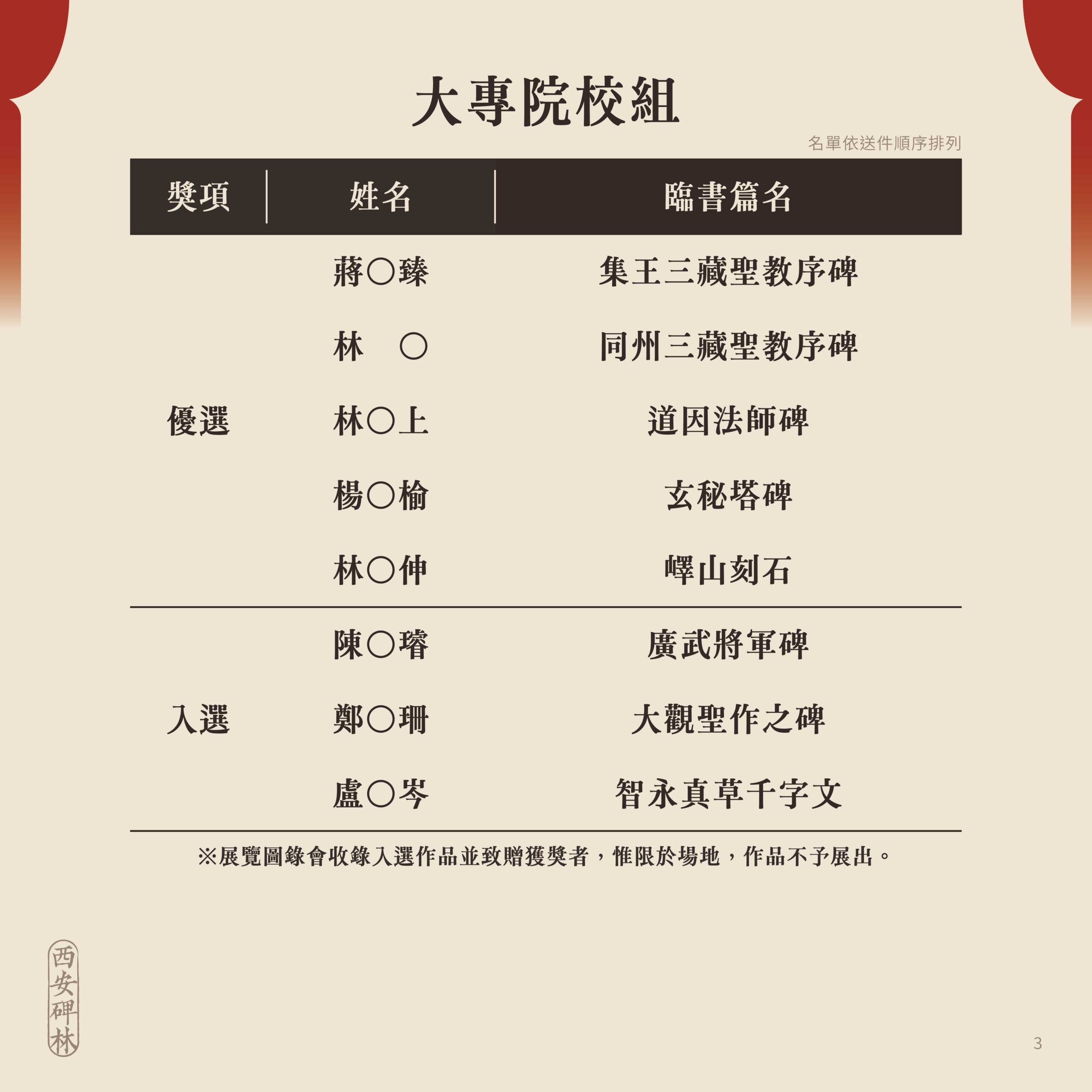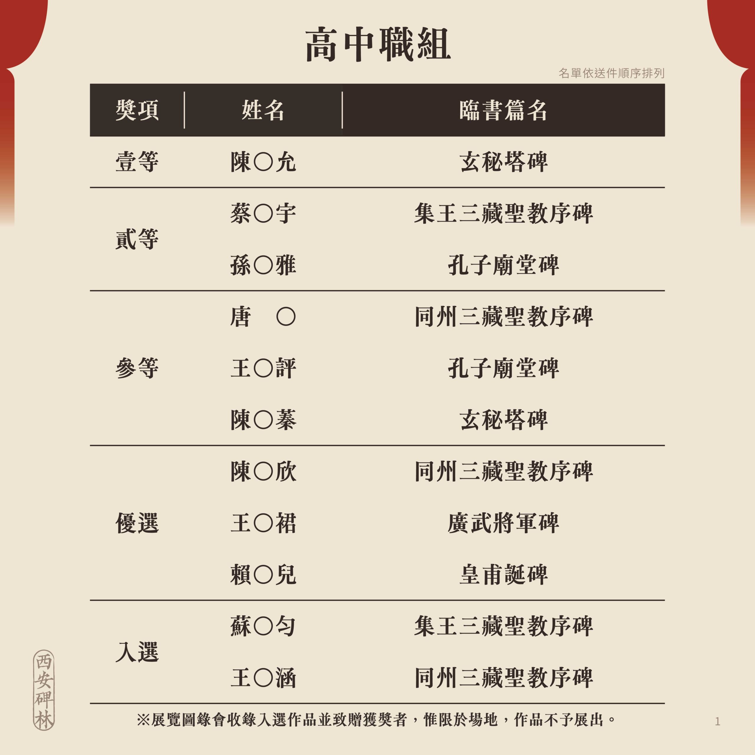 臨古開新.共書輝煌~2025西安碑林海峽兩岸臨書徵件活動 徵件獲獎名單出爐!